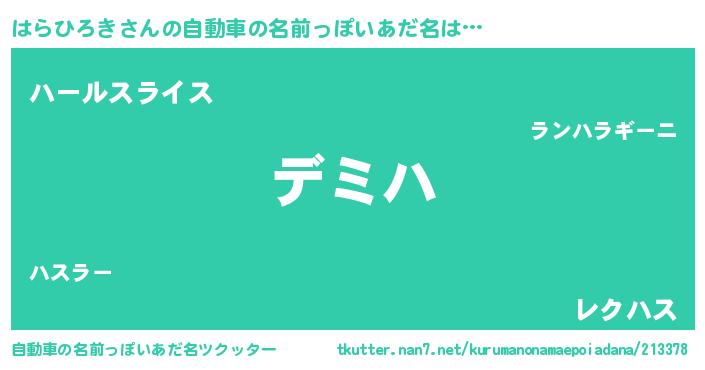 | 男性向けラノベタイトル風あだ名 | 『はらひろきという概念が存在しない退屈な世界 』 |