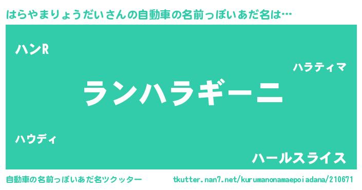 | 胡散臭い通販商品みたいなあだ名 | 『100人中100人が認めたマグネット磁石…その名も「はらやまりょうだい」』 |