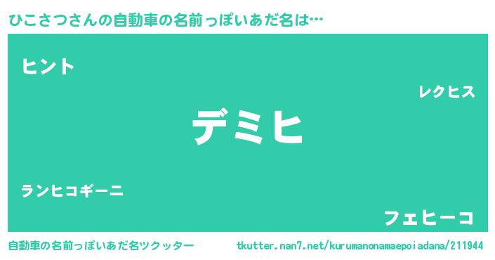 | 男性向けラノベタイトル風あだ名 | 『ひこさつという概念が存在しない退屈な世界 』 |
