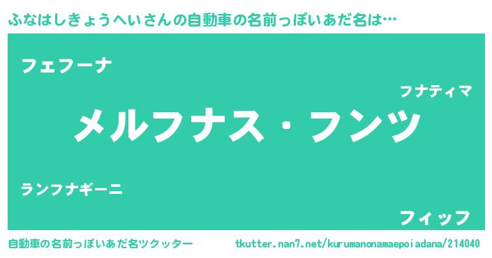 | 意味不明あだ名 | 『自称ふなはしきょうへい』 |