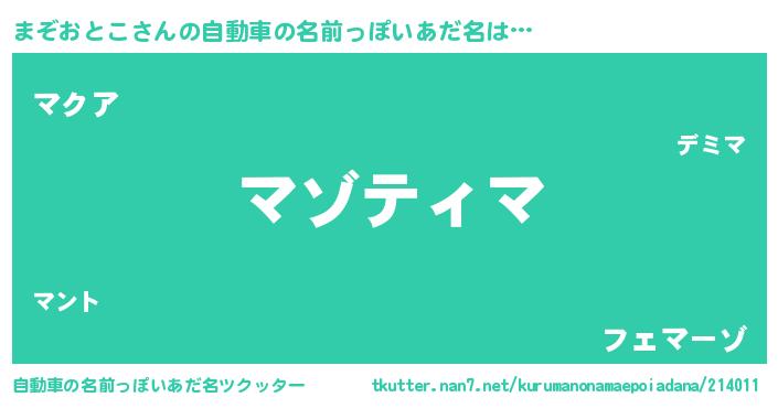 まぞおとこさんの自動車の名前っぽいあだ名をツクッター!