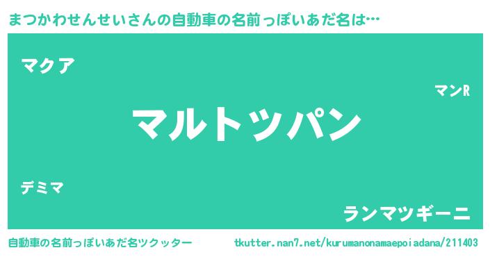 | 意味不明あだ名 | 『とにかく怪しいまつかわせんせい』 |
