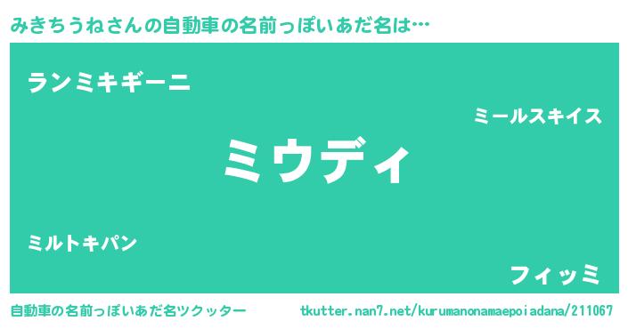 | 意味不明あだ名 | 『住所不定無職みきちうね(6歳)』 |