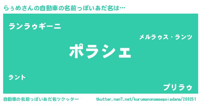 | 男性向けラノベタイトル風あだ名 | 『この素晴らしい世界にらぅめを!』 |