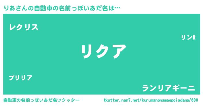 | 女子向けラノベタイトル風あだ名 | 『りあの雑貨屋さん』『死神りあの再婚』 |