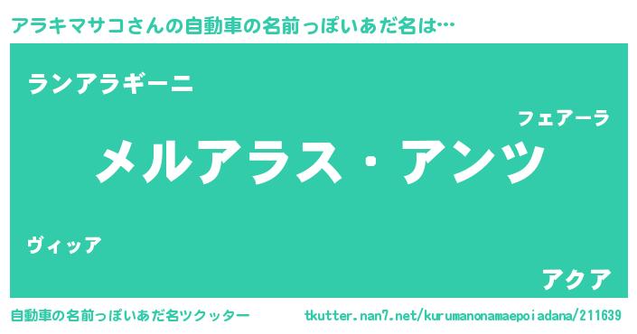 | 男性向けラノベタイトル風あだ名 | 『Re:アラキマサコから始める異世界生活』 |