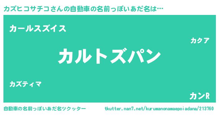 | 欧米人風あだ名 | 『ウサインカズヒコサチコ』 |