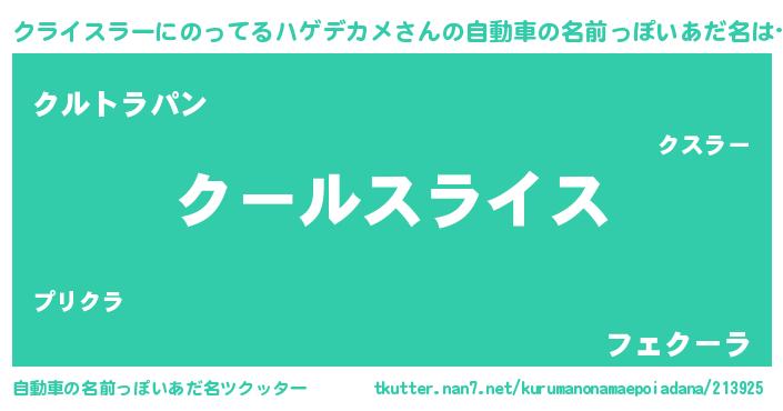| 胡散臭い通販商品みたいなあだ名 | 『全米が絶賛したサプリメント…その名も「クライスラーにのってるハゲデカメ」』 |