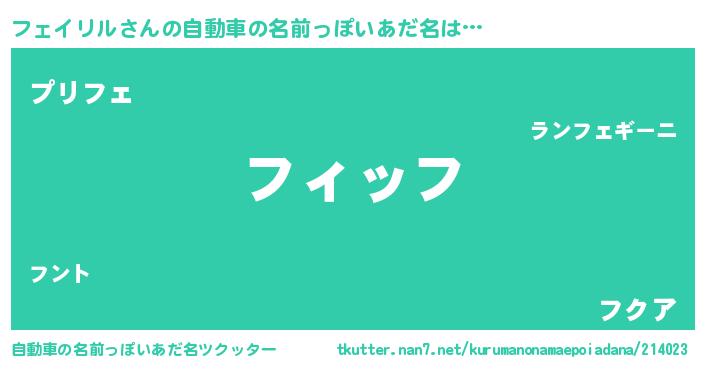 | 男性向けラノベタイトル風あだ名 | 『おまえをオタクにしてやるから、俺をフェイリルにしてくれ! 』 |