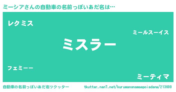 | 欧米人風あだ名 | 『ミーシアクリステル』 |