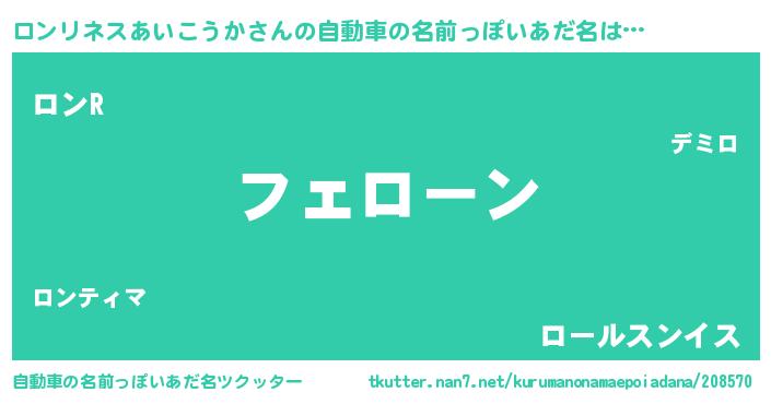 | 男性向けラノベタイトル風あだ名 | 『うちのロンリネスあいこうかが世界を掌握している!』 |