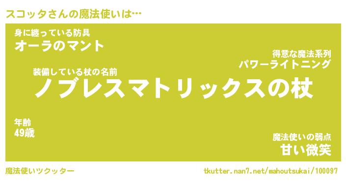 | ファンタジー風あだ名 | 『スコフェル』『エターナルスコッター』 |