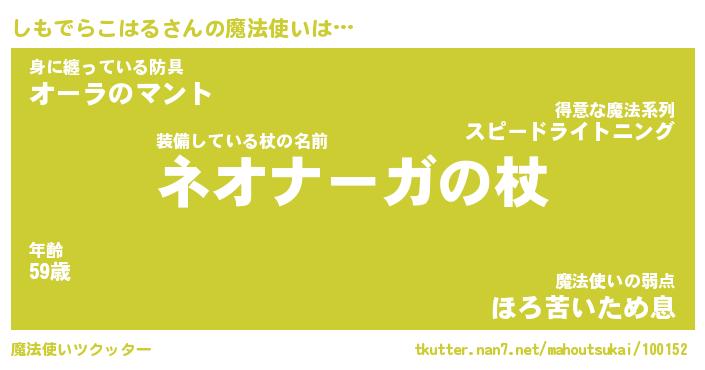 | 伝説のあだ名 | 『不死鳥のスナイパーしもでらこはる』 |
