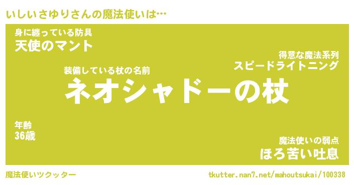 | 男性向けラノベタイトル風あだ名 | 『イシイサユリアートオンライン』 |