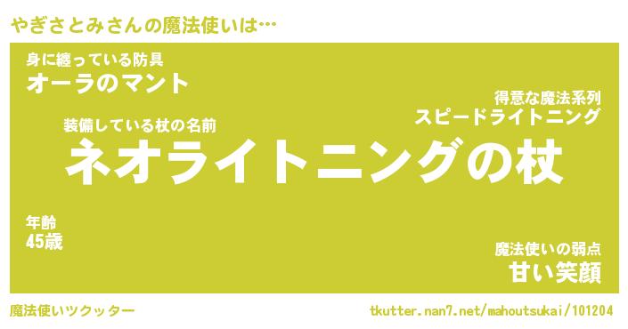 | ファンタジー風あだ名 | 『ヤギフェル』『エターナルヤギサトミー』 |