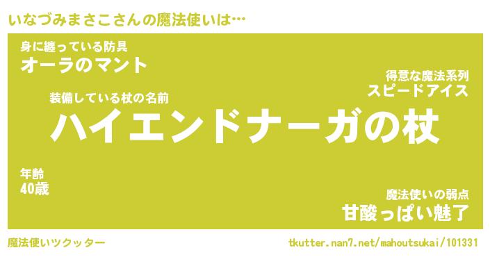 | 男性向けラノベタイトル風あだ名 | 『イナヅミマサコアートオンライン』 |