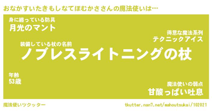 | ツイッター | おなかすいたきもしなてほむかささんのツイッターID『namakemono_star』 |