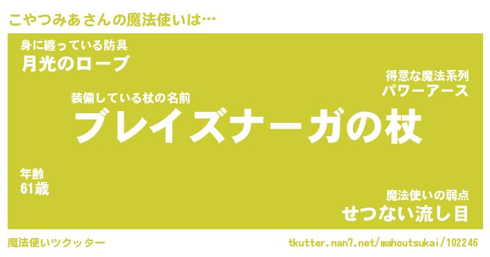 | 伝説のあだ名 | 『不死鳥のスナイパーこやつみあ』 |