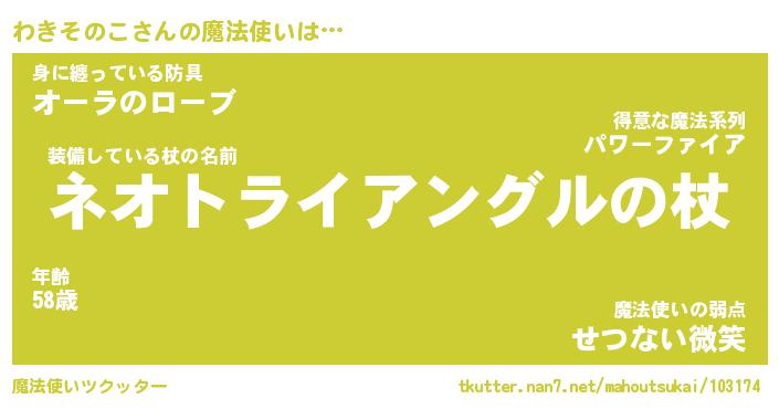 | ファンタジー風あだ名 | 『ワキフェル』『エターナルワキソノコー』 |