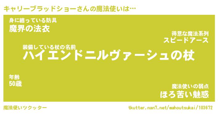 | 男性向けラノベタイトル風あだ名 | 『キャリーブラッドショーアートオンライン』 |