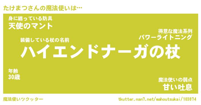 | 肩書あだ名 | 『たけまつ御曹司』『たけまつ国家主席』 |