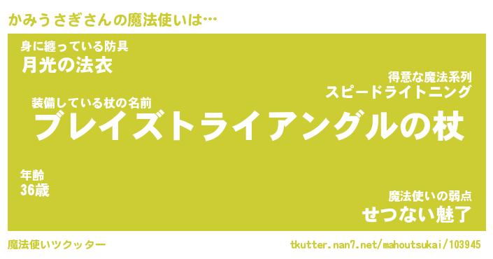 | ファンタジー風あだ名 | 『カミフェル』『エターナルカミウサギー』 |