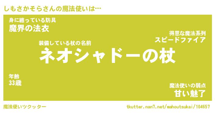 | 伝説のあだ名 | 『不死鳥の竜騎士しもさかそら』 |