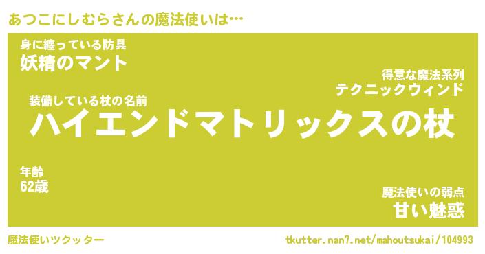 | 伝説のあだ名 | 『封印されし竜騎士あつこにしむら』 |