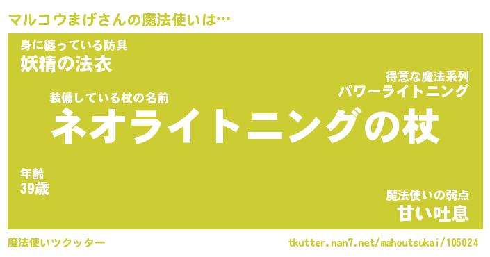 | 男性向けラノベタイトル風あだ名 | 『マルコウまげの憂鬱』 |