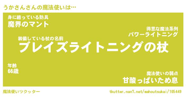 | 男性向けラノベタイトル風あだ名 | 『うかさんの憂鬱』 |