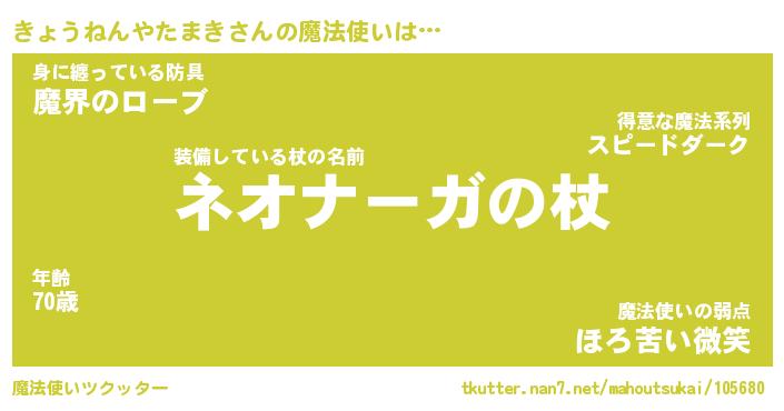 | 肩書あだ名 | 『きょうねんやたまき御曹司』 |