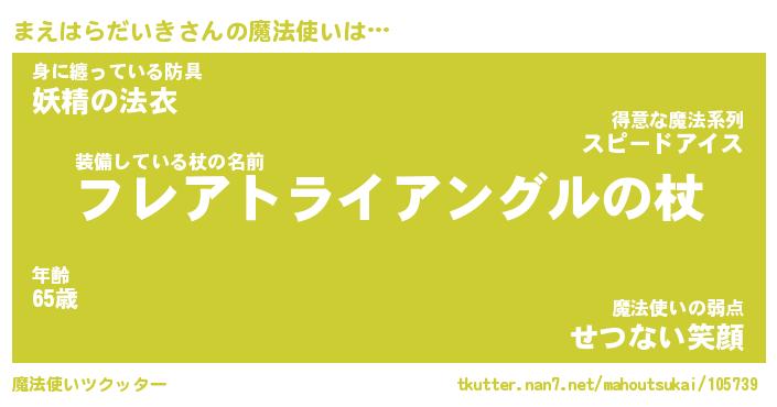 | 胡散臭い通販商品みたいなあだ名 | 『必ず成功する霊験あらたかなお札…その名も「まえはらだいき」』 |