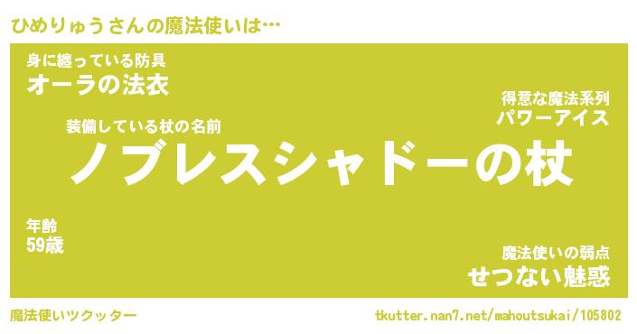 | ファンタジー風あだ名 | 『ヒメフェル』『エターナルヒメリュウー』 |