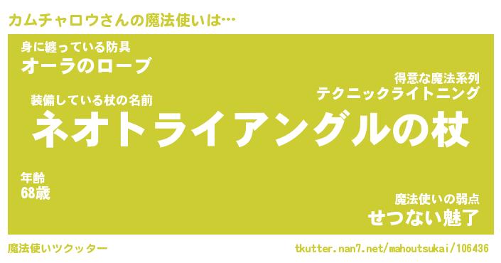 | 男性向けラノベタイトル風あだ名 | 『カムチャロウの憂鬱』 |