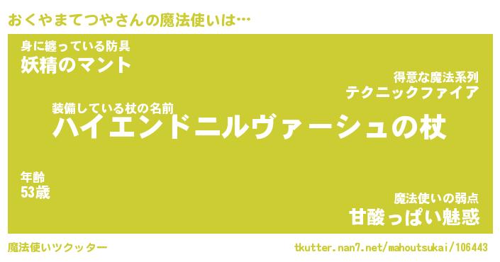 | 肩書あだ名 | 『おくやまてつや御曹司』 |