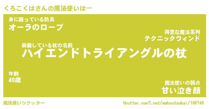 | ファンタジー風あだ名 | 『クロフェル』『エターナルクロコクハー』 |