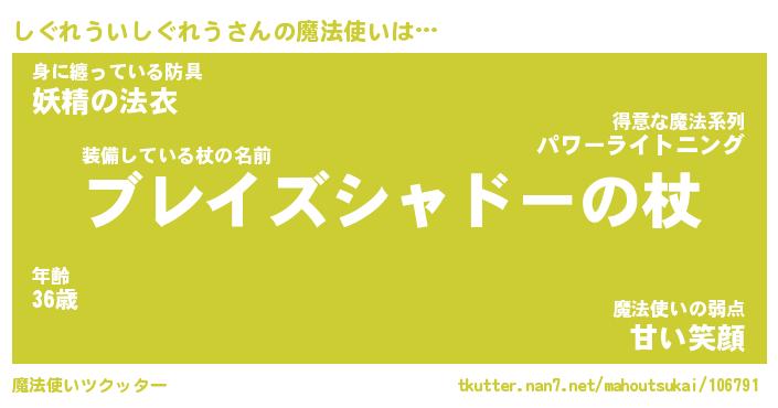 | 伝説のあだ名 | 『伝説の竜騎士しぐれういしぐれう』 |