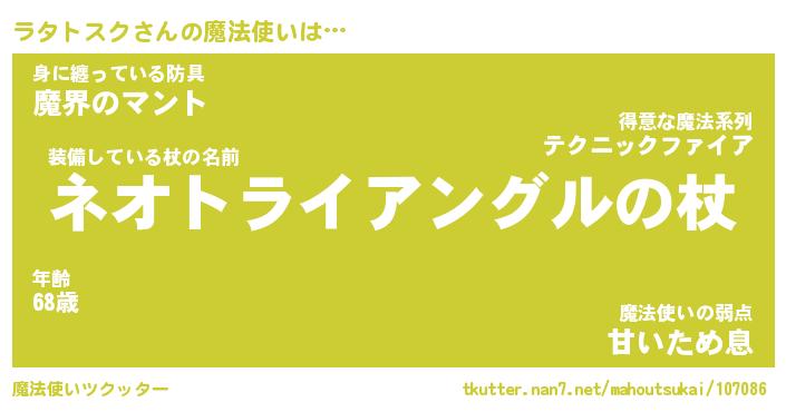| ファンタジー風あだ名 | 『ラタフェル』『エターナルラタトスクー』 |