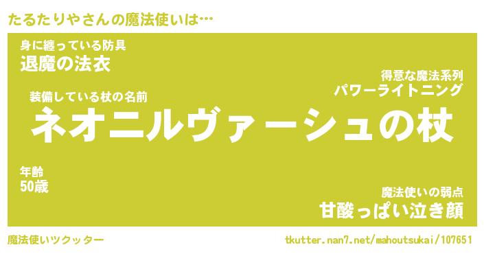 | ファンタジー風あだ名 | 『タルフェル』『エターナルタルタリヤー』 |