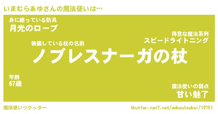 | ツイッター | いまむらあゆさんのツイッターID『dendenmushi_nyan』 |