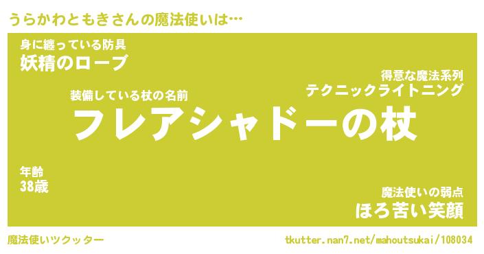 | 男性向けラノベタイトル風あだ名 | 『うらかわともきの憂鬱』 |