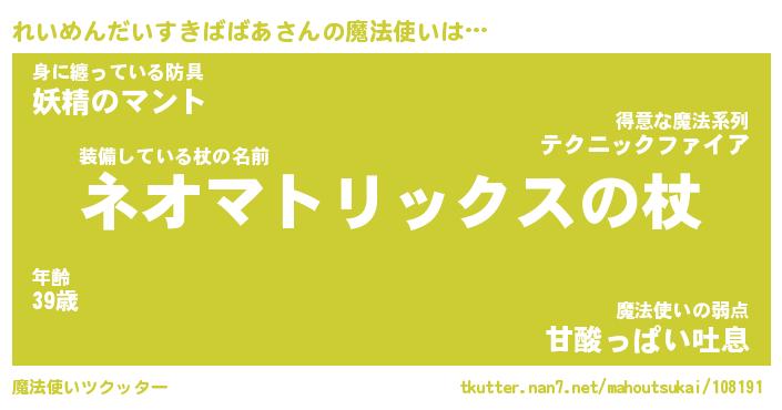 | 伝説のあだ名 | 『不死鳥の竜騎士れいめんだいすきばばあ』 |