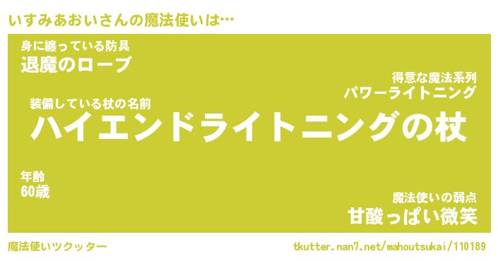 | 伝説のあだ名 | 『封印されし傭兵いすみあおい』 |