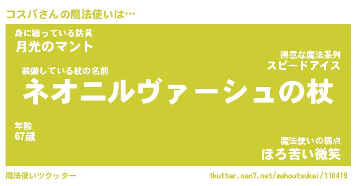 | 男性向けラノベタイトル風あだ名 | 『コスパの憂鬱』 |