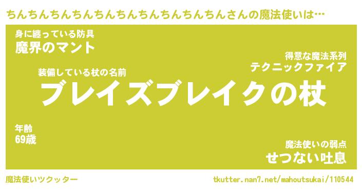 | 男性向けラノベタイトル風あだ名 | 『ちんちんちんちんちんちんちんちんちんちんの憂鬱』 |