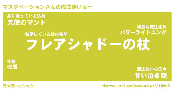 | 男性向けラノベタイトル風あだ名 | 『マスタベーションの憂鬱』 |