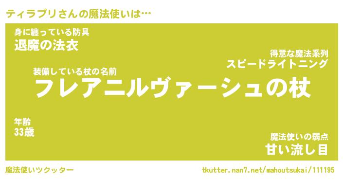 | 男性向けラノベタイトル風あだ名 | 『ティラプリの憂鬱』 |