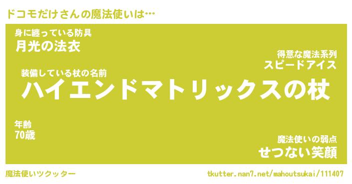 | ファンタジー風あだ名 | 『ドコフェル』『エターナルドコモダケー』 |
