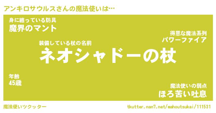 | 伝説のあだ名 | 『不死鳥の竜騎士アンキロサウルス』 |