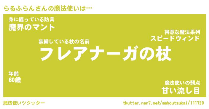 | 伝説のあだ名 | 『伝説のスナイパーらるふらん』 |